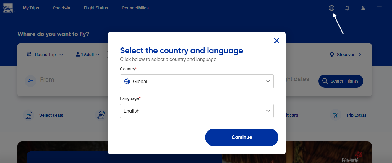 If your country’s portal is not available on copa.com, please select the Global portal.