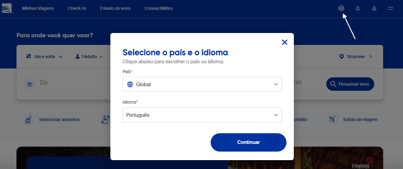Por esse motivo, recomendamos selecionar o portal correspondente ao país de origem do voo, para que os impostos aplicáveis sejam incluídos corretamente no momento da compra.